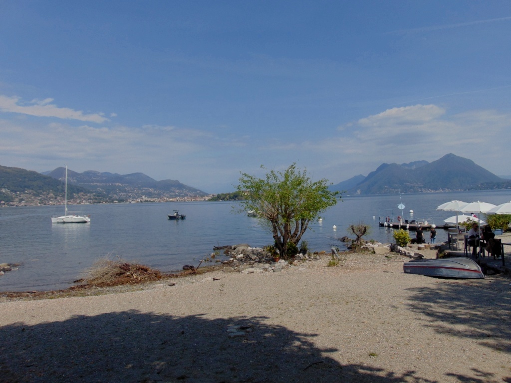 drewnianych popiersi apostołów Piotra i Andrzeja, patronów rybaków. W połowie sierpnia podczas procesji figura przedstawiająca patrona jest ładowana do łodzi i opływa wyspy. Taka procesja wodna. Mła się przyznawa że sobie odpuściła zwiedzanie świętego miejsca, robiła bowiem w mózgu miejsce na palazzo z Isola Bella. Tak szczerze pisząc to z Isola dei Pescatori mła najbardziej podobał się widok na inne wyspy na jeziorze i na Stresę. Zaprawdę bellvedere!