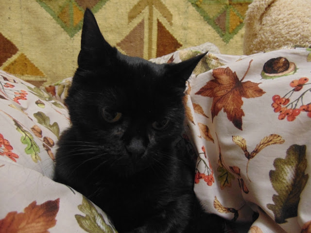 Mła w tygodniu miała  ciężko, ale jeszcze w poniedziałek polazła na tych "Chłopów" ( cóś na kształt recenzji będzie w osobnym wpisie ). Później już było totalne zakręcenie - Gienia z grypą a mła z  wyprowadzaniem Rukiego, Szpagetka z zębami a mła ze szpitalikiem domowym, Cio  Mary z zębami a mła z asystą i takim mniejszym szpitalikiem domowym. Jakby było mało to mła  mentalnie oberwała, nie dość że Dorkowy Rysiu, bohater blogiego, odszedł był niespodziewanie w zeszłym miesiącu, to teraz,  jeszcze bardziej niespodziewanie odeszła u Kocurrka mała Vendzianka. Ech... mła drżała o Szpagetkę, po tych wszystkich okropnych wieściach. Na szczęście Szpagetka zabieg zniosła, niestety nie ma zębów. Mam bezzębną kotkę no i git. Grunt że ma ochotę na jedzenie pasztecików, to jest dla mła istotne. Dziąsełka leczymy w związku z czym Szpagetka jest wściekła i  jest wyżywanie się na mła. Mła stara się znosić z godnością te burczenia, drapania, prychanie i odwracanie się do mła tyłkiem. Milsza ta moja zołza się robi jedynie w porach karmienia, podżera po czym myka. Dobrze,  bo dwa dni po zabiegu praktycznie przespała a teraz razem z Mrutim po ogrodzie rifififi. Cio Mary nadspodziewanie dobrze zniosła wiercenia w szczęce, może będzie OK, tfu, tfu, tfu! Mła jeszcze tak całkiem nie oddycha ale  mam wrażenie że co najcięższe już się przewaliło. Jutro mła napisze wincyj i odpowie na komentarze pod poprzednim  wpisem, teraz  już pada na twarz. Dziś  w fotkach tysiąc i jedna  mina Szpagetki  a w Muzyczniku "Czicziribina" ( Czicziribina to najnowsza ksywa Szpagi, no wiecie  - Czicziribina czarna kocina ).